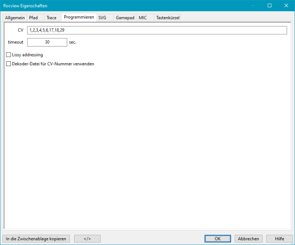 Nach Ablauf dieser Zeit (in Sekunden) aktiviert Rocview die Sektion zum Programmieren von Dekodern wieder, wenn in der Zwischenzeit keine Antwort auf ein Programmier-Kommando von der Zentrale gekommen ist.