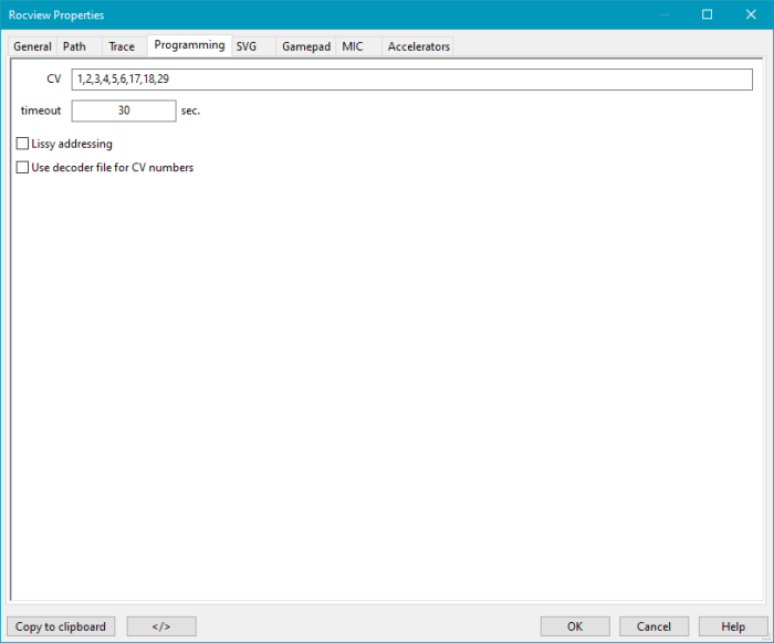 After this amount of seconds the Rocgui will enable the programming section again if no response was received from the Command Station regarding a programming command.