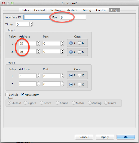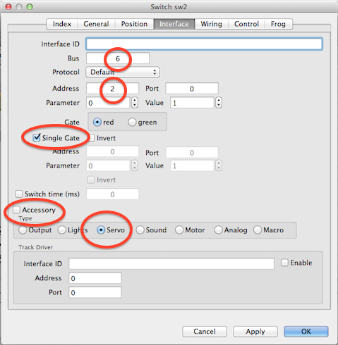Set the bus to the RocNetNode-ID, the port type to Servo and the address to the channel on which the servo is connected.
