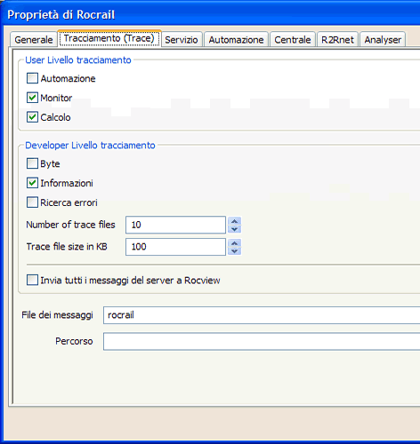 Tutte le note normalmente non utili sono mostrate e probabilmente rallentano il server Rocrail. Questo livello di trace serve solo agli sviluppatori e ai tester.