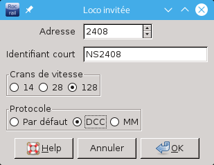 L'adresse donnée est utilisé comme identifiant de locomotive si l'identifiant court est laissé vide.
