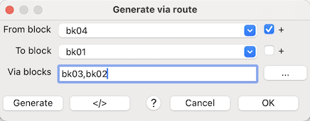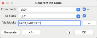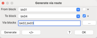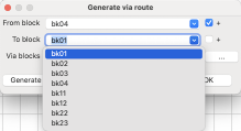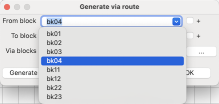 Hint: as an additional feature the field "Via Blocks" can be left empty to generate a route from one block to a next block.