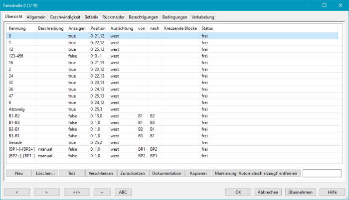 Tipp: Das manuelle Anlegen einer Fahrstraße wird erheblich vereinfacht, wenn dafür die Funktion "Fahrstraße aufzeichnen" des Befehls-Rekorders verwendet wird.