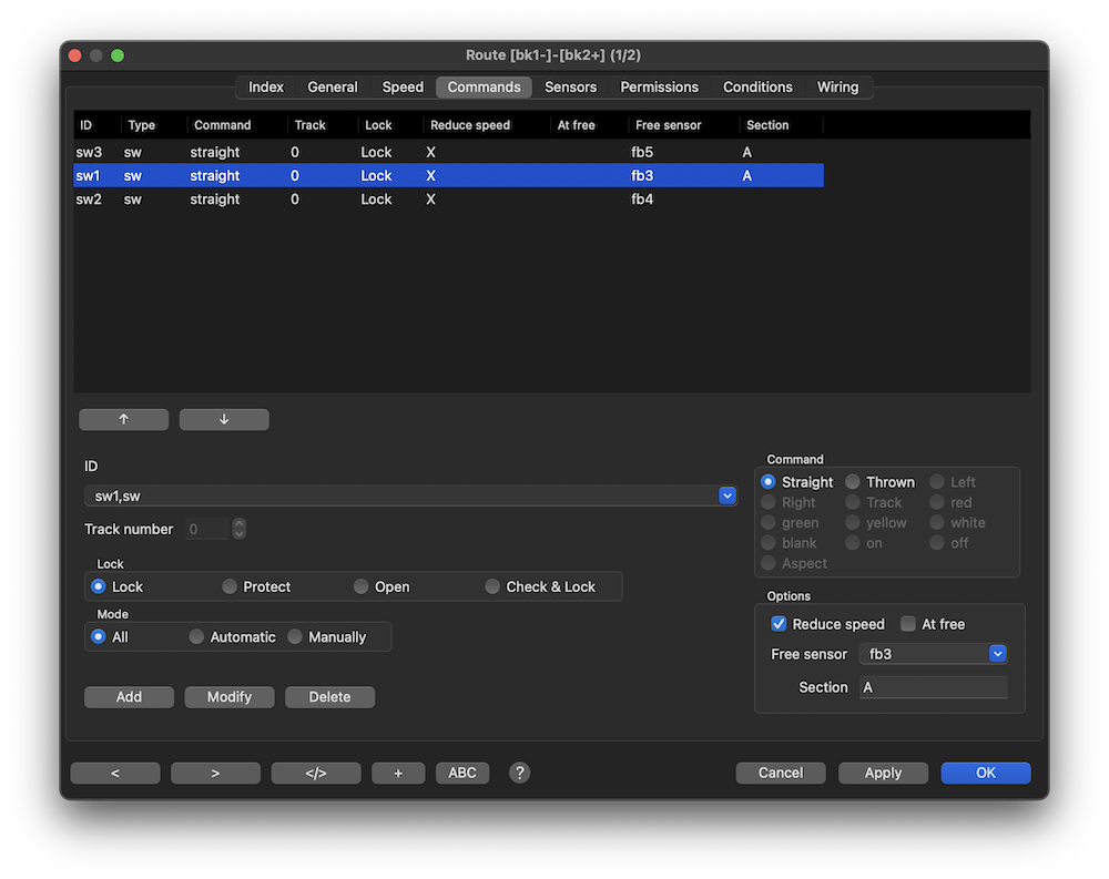 Selecteer een wissel uit de listbox, verander het commando en druk op de Verander knop.