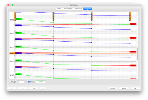 Si l'horaire comporte plusieurs entrées, la boîte de dialogue Planification peut être redimensionnée pour faire plus de place au diagramme. .
