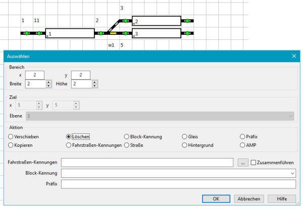 Die Objekte des ausgewählten Bereichs werden vom Gleisplan gelöscht.