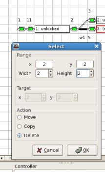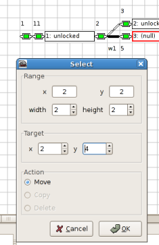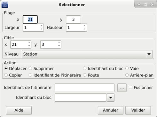 Pour capturer tous les objets, la valeur du zoom doit être réduite. - Sélectionner le nouveau niveau ("3") dans le champs Niveau cible et choisir l'action "Déplacer".