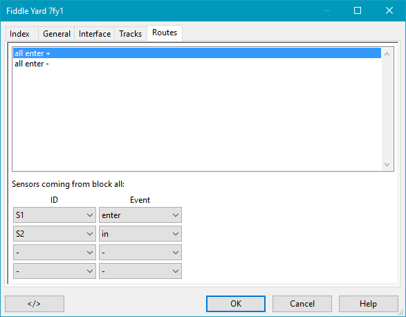 The setup for Fiddle Yard routes is comparable with the Block Routes.