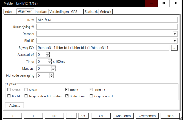 De ID of naam van de melder is voor Rocrail de unieke sleutel. . Indien je dit ID verandert moeten ook de blokken en de rijwegen aangepast worden.