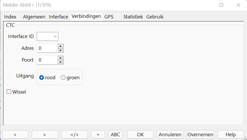 Op dit scherm kan de verbinding vastgelegd worden tussen een melder en het Centrale VerkeersLeiding paneel.