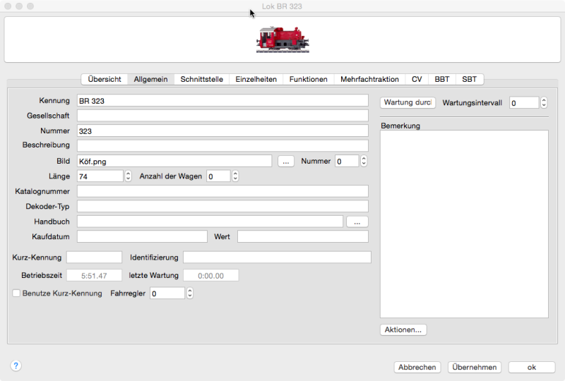 Zuerst einmal werden die Lok-Eigenschaften aufgerufen und der Reiter Schnittstelle ausgewählt: