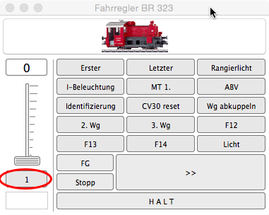 | Parameter: | 0 (stellt die Fahrstufe auf 0 zurück) |