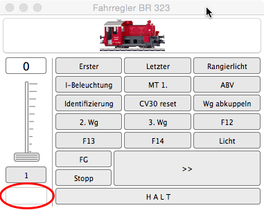 - Einstellung der Lok auf km/h für die Geschwindigkeit
