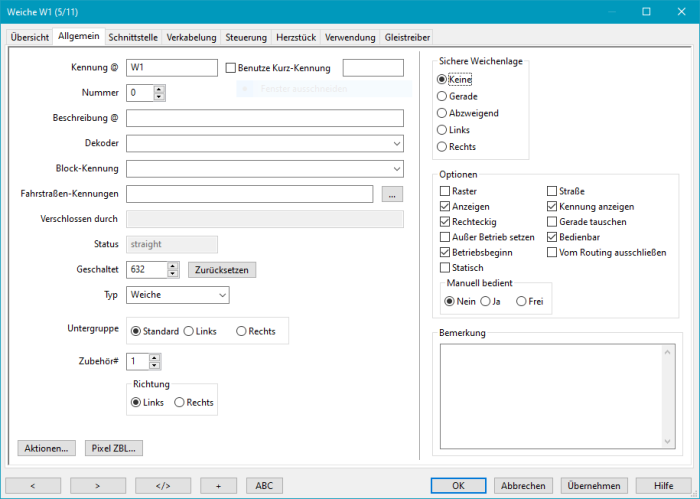 Dieses Feld dient zur optionalen Beschreibung einer Weiche mit freiem Text und hat keine weitere Bedeutung.
