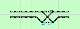| 1 | Double slip switch with one motor like, e.g., Märklin 24624, 2260, 5128. One motor moves all slips, two possible positions Positions: Straight, turnout | Crossing left Crossing right |