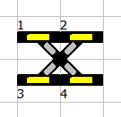 | Crossing (no motor/coil) with option Rectangular: 90º crossing. The left/right option does not affect the visualization. | |