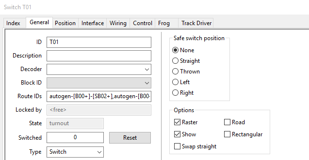 If the switch is unlocked, and Rocrail is running in auto mode, this position will be set after the Switch safe position timer is elapsed.