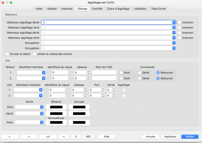 Vous pouvez attribuer jusqu'à quatre capteurs à l'aiguillage.