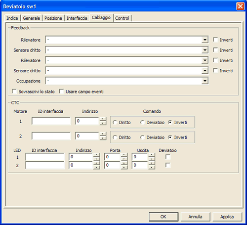 Indirizzi di uscita per controllare i led sul CTC o sul pannello di controllo per mostrare la posizione attuale dei deviatoi.