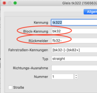 Das in den folgenden Tests verwendete Rocrail-Gleiselement ist hier gekennzeichnet: