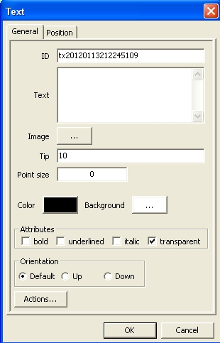 Un objet texte doit être créé dans le plan de voies pour contenir le texte dynamique. Il n'est pas important de savoir quel texte est écrit dans le champ car cela sera modifié par l'action qui contrôle l'objet texte et peut donc être laissé vide..
