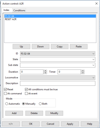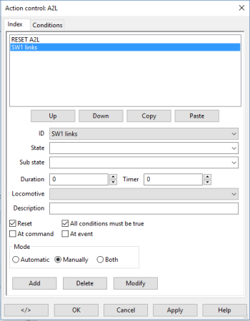 Action Summary for "virtual" routes. Here a separate action is required for each turnout that needs to be changed. In both cases the respective actions are invoked, but not the turnouts themselves. The RESET action will be discussed RESET