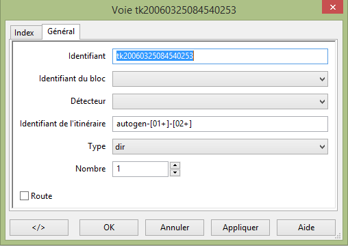 Le nombre d'éléments de voies, tous types confondus, ne doit pas dépasser 100 entre deux blocs pour que le routeur puisse concevoir un itinéraire reliant ces 2 blocs lors de son calcul.