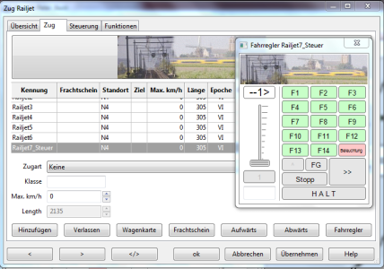 Registerkarte Zug –> Schaltfläche Fahrregler drücken –> Regler poppt auf