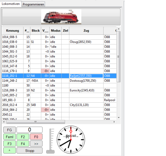 - Die Länge des Zugverbandes (Lok + Wagen) wird automatisch berechnet und in der Lokliste in der Spalte "Zug" angezeigt.