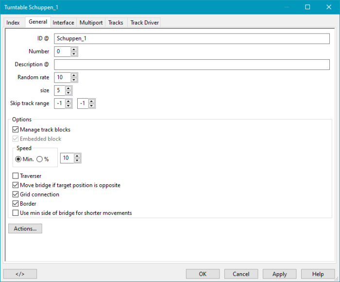 The ID is used through out the Rocrail program as unique key for referencing this turntable and is therefor very important.