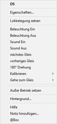 Gleiche Funktionen, wie Start und Stop im Kontextmenü des Lok-Bedienfeldes (s. dort).