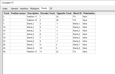 - Each track exit a position sensor in dialog Turntable: Tracks