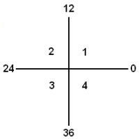 - Starting with track number 0 in the east, 12 in the north, 24 in the west and 36 in the south.