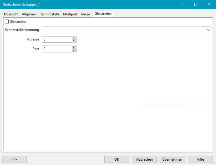 Diese Option gilt nur, wenn für die Drehscheibe die Option Integrierter Block und für den Block ein Gleistreiber-System aktiviert und verwendet wird.