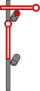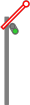 Symbol: Due to the coupling only two aspects are possible. One lamp at the top either green or off (grey), one lamp at the bottom either yellow or red.
