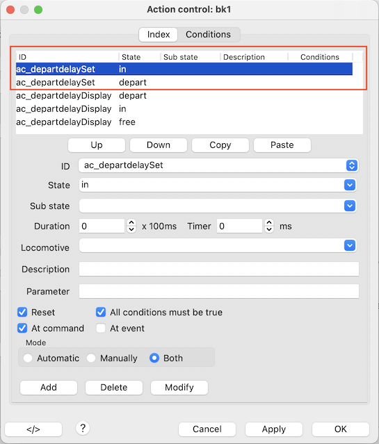 Om het compleet te maken wordt het XML-script alleen uitgevoerd voor die locomotieven die tot de klasse "DELAY" behoren.