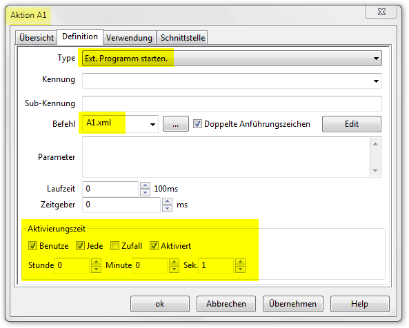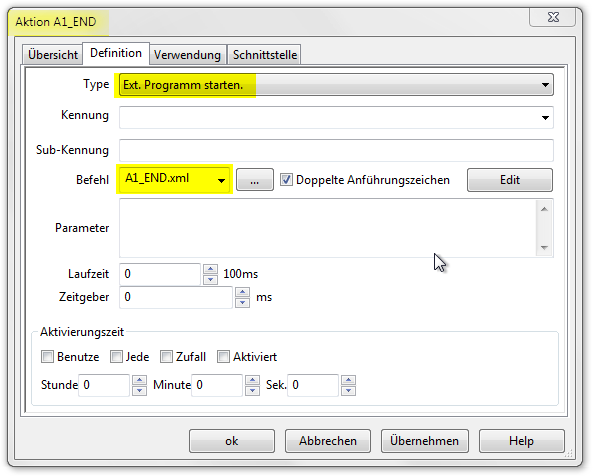Es werden zwei Aktionen zum Starten der Scripte konfiguriert:
