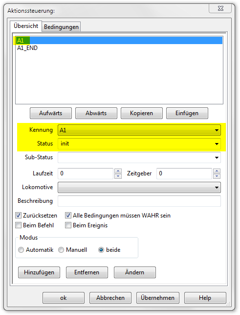 Es sind zwei Scripte notwendig. Beim Start von Rocrail (Systemaktion "init") wird das Ampelscript gestartet: