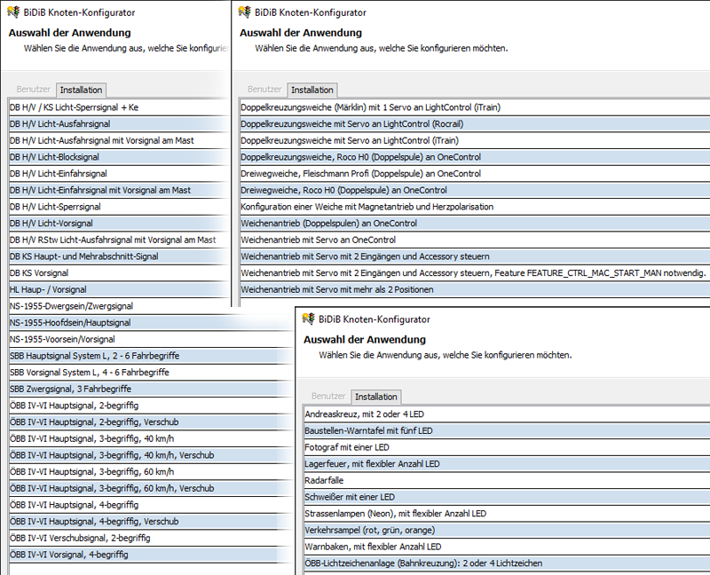 Obwohl für viele Standard- und Spezialanwendungen im BiDiB-Wizard bereits vordefinierte Konfigurationen existieren, werde ich bei meinen Beispielen darauf nicht zurückgreifen und zum besseren Verständnis die jeweilige Konfiguration Schritt für Schritt durchführen.